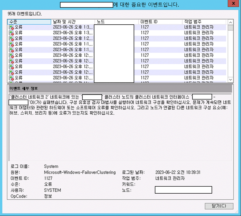 이로 인해 Cluster Service 서비스가 중지되거나 Failover 되는 상황이 발생함.