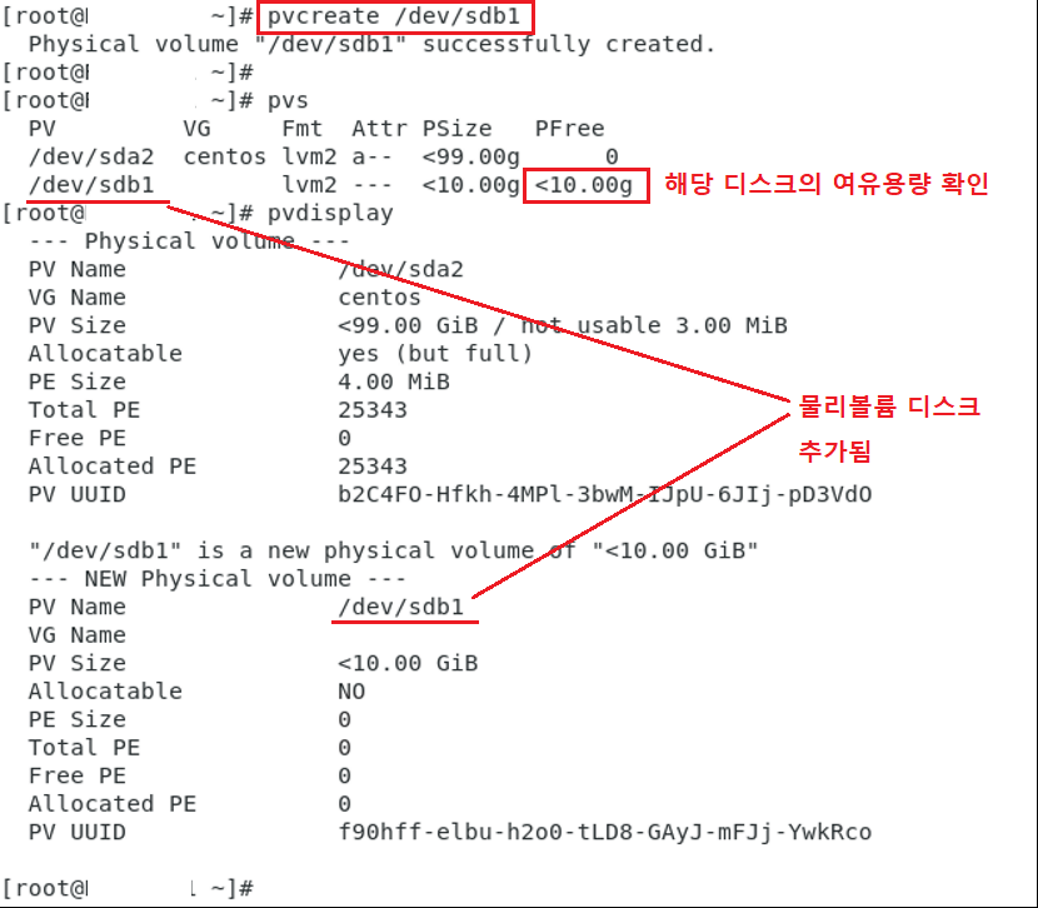 명령어 : pvcreate 디스크