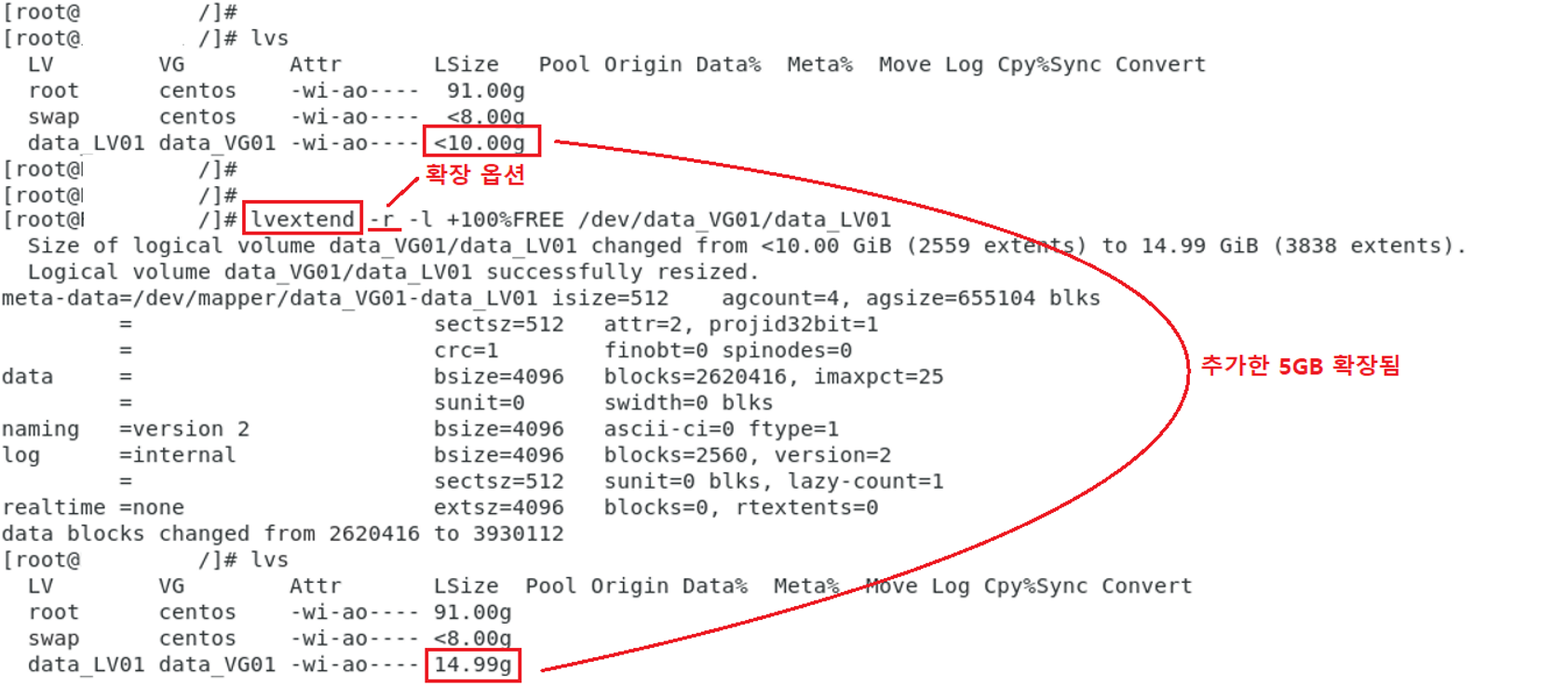 - lvextend 수행 후