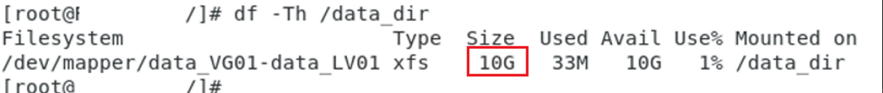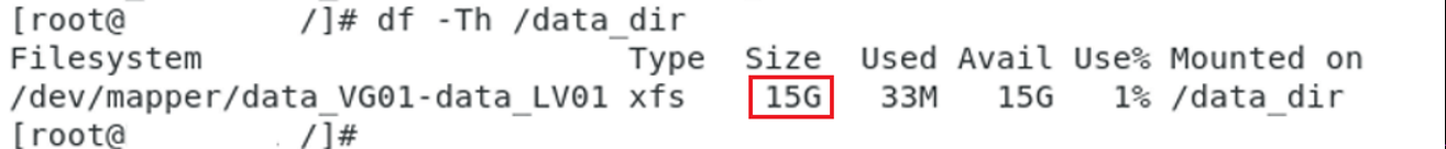 - 생성한 볼륨그룹에 속한 PV만큼의 용량이 할당됬는지 확인