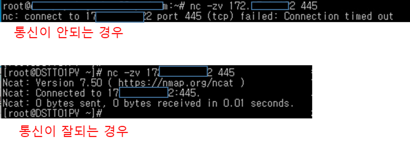 확인2) smb포트 139, 445 통신 오픈됬는지