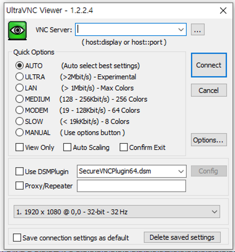 2) 클라이언트에서 vnc를 이용하여 접근할 프로그램 준비 (여기서는 UltraVNC Viewer라는 프로그램 사용)