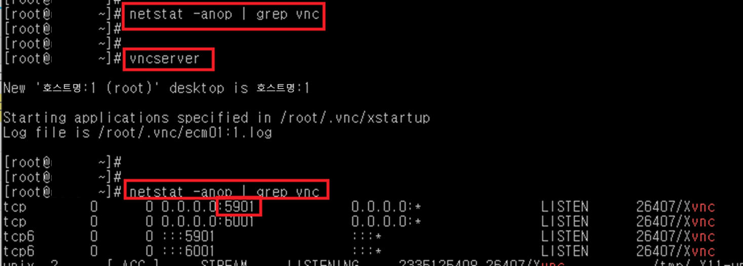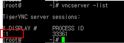 vncserver -list 명령으로도 인스턴스번호 확인 가능