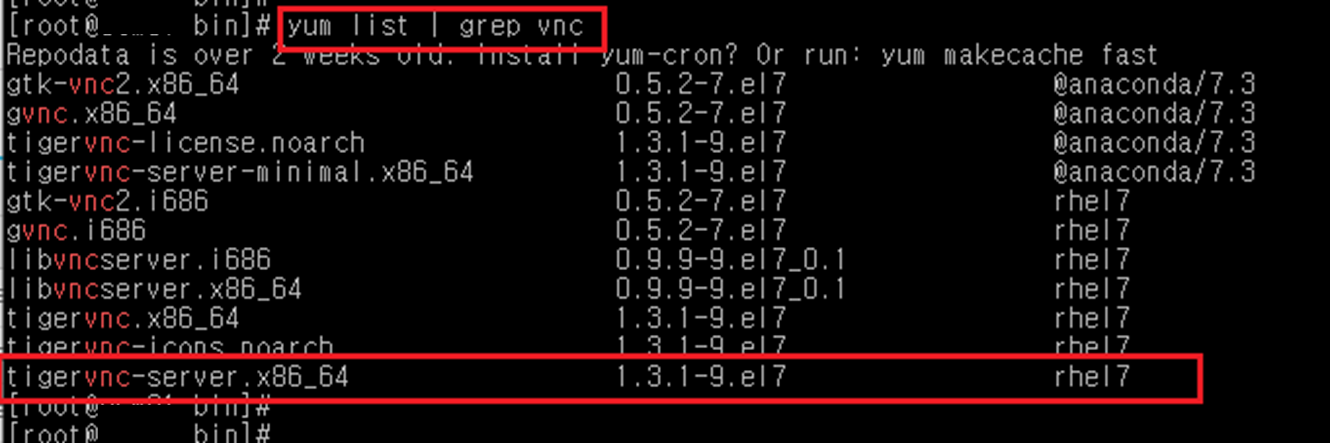 rpm -qa | grep -i vnc 또는 yum list installed | grep -i vnc |