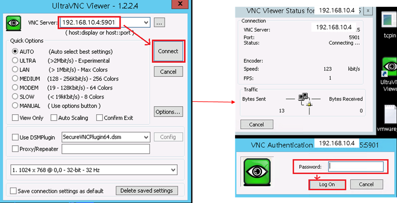 VNC Server 정보는 서버IP와 확인된 Port로 접속