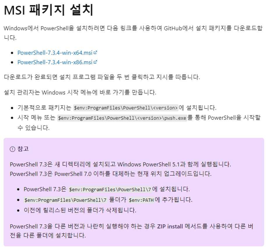 Windows에서 PowerShell을 설치하는 방법에 대한 정보