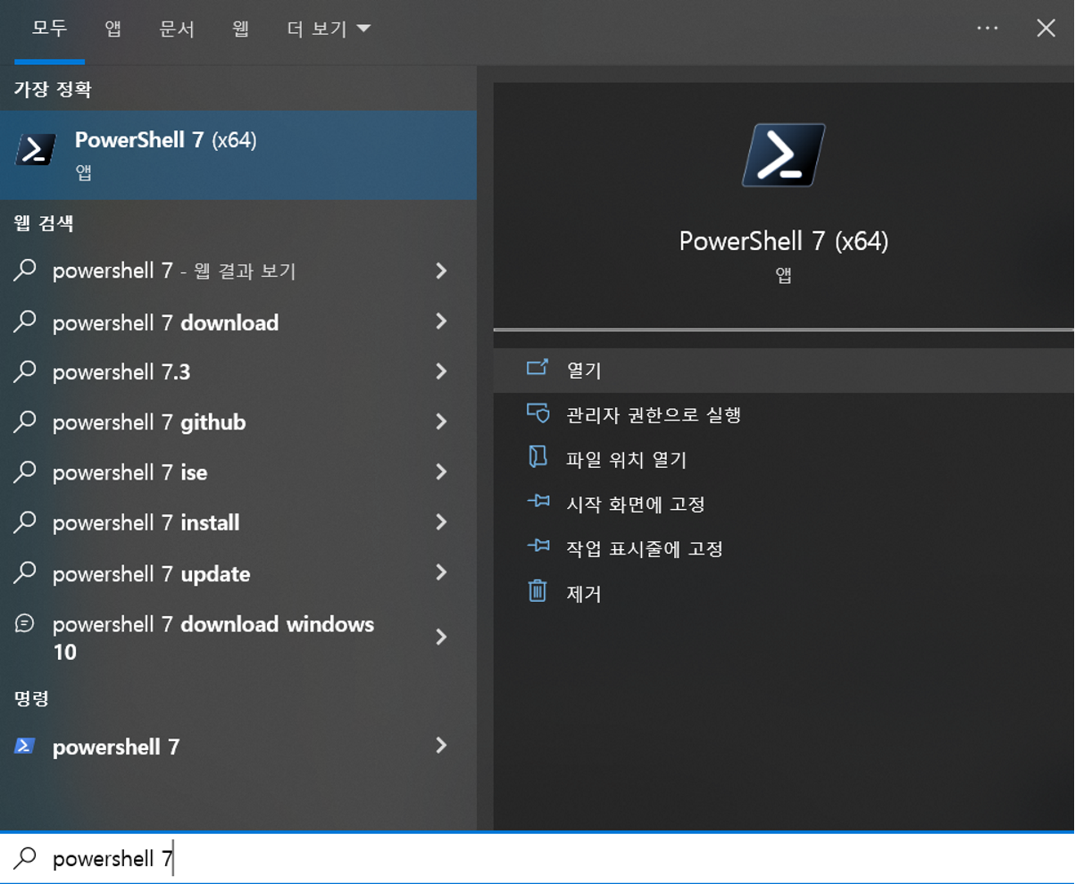 3) 업그레이드 완료 후 PowerShell 7 실행