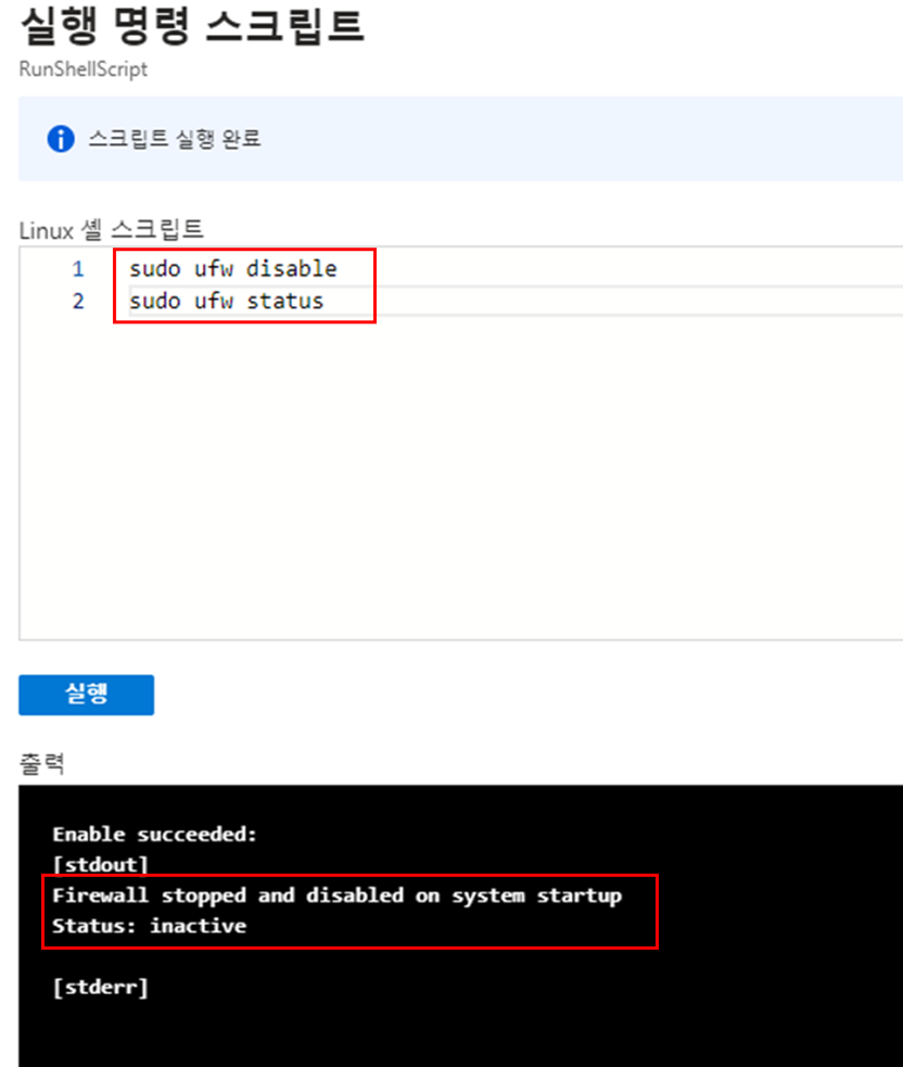 3. 실행 명령 응용 사용 (OS방화벽에서 deny가 존재하여 SSH(22)로 원격접속을 하지 못할 때)