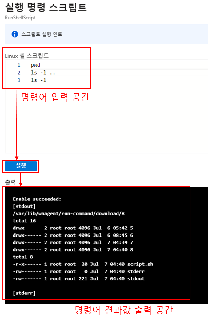 Azure 포탈에서 원격명령을 수행할 수 있음.