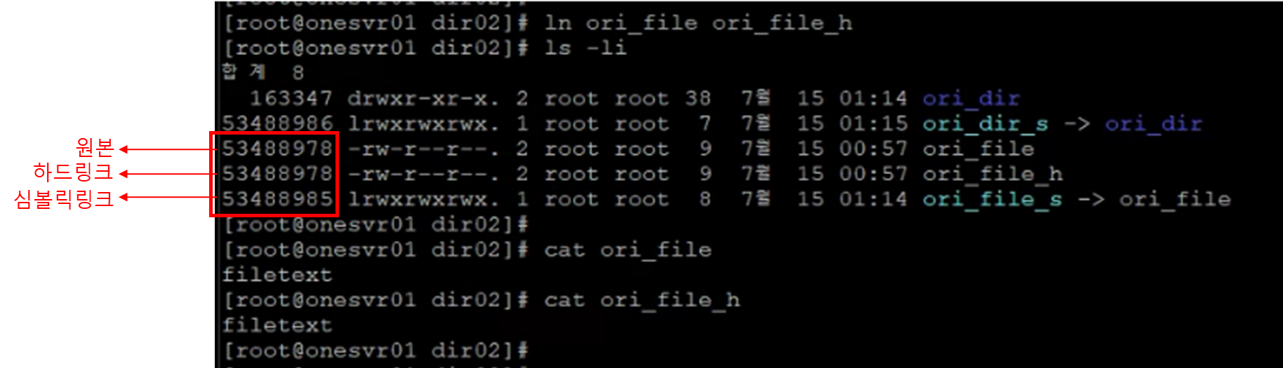 그렇기때문에 하드링크는 원본파일이 없어져도 주소가 남아있기 때문에 데이터 소실이 없다.