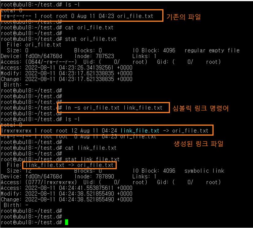 - 심볼릭 링크 : 원본파일에 연결