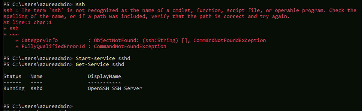 Azure에서 기본 이미지로 윈도우를 설치하면 SSH-Client가 자동으로 설치되는것을 확인했다.