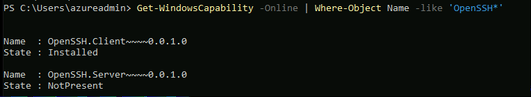Get-WindowsCapability -Online | Where-Object Name -like 'OpenSSH*' |