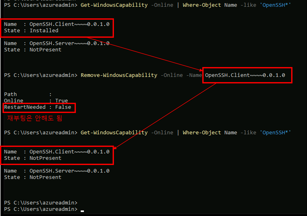 그래서 사용 안 하는 OpenSSH는 제거하는게 가장 깔끔할것 같아서 그냥 제거를 해본다.