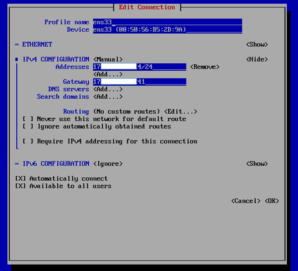 | rm /etc/sysconfig/network-scripts/ifcfg-ens160 rm /etc/sysconfig/network-scripts/ifcfg-ens161 nmtui |