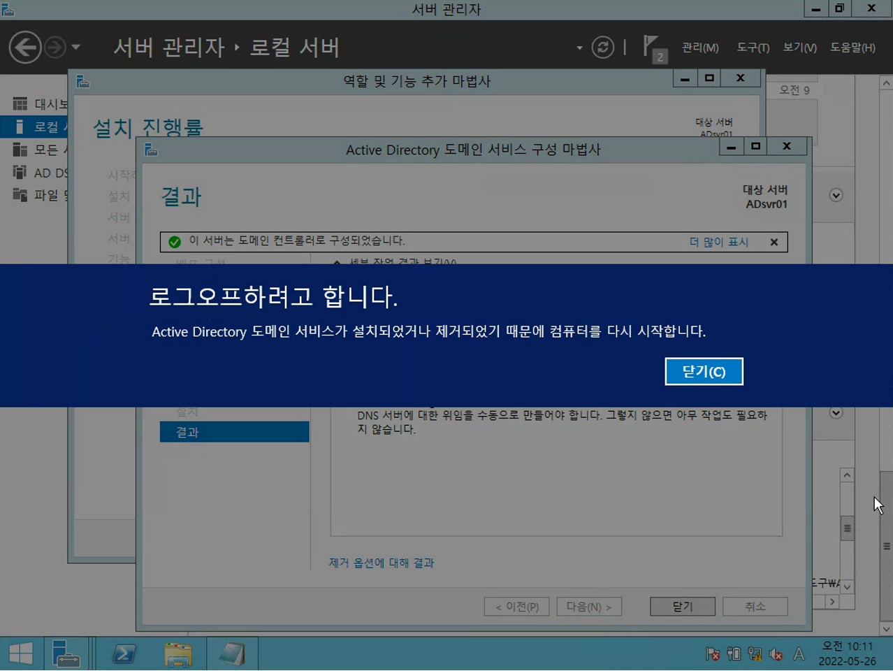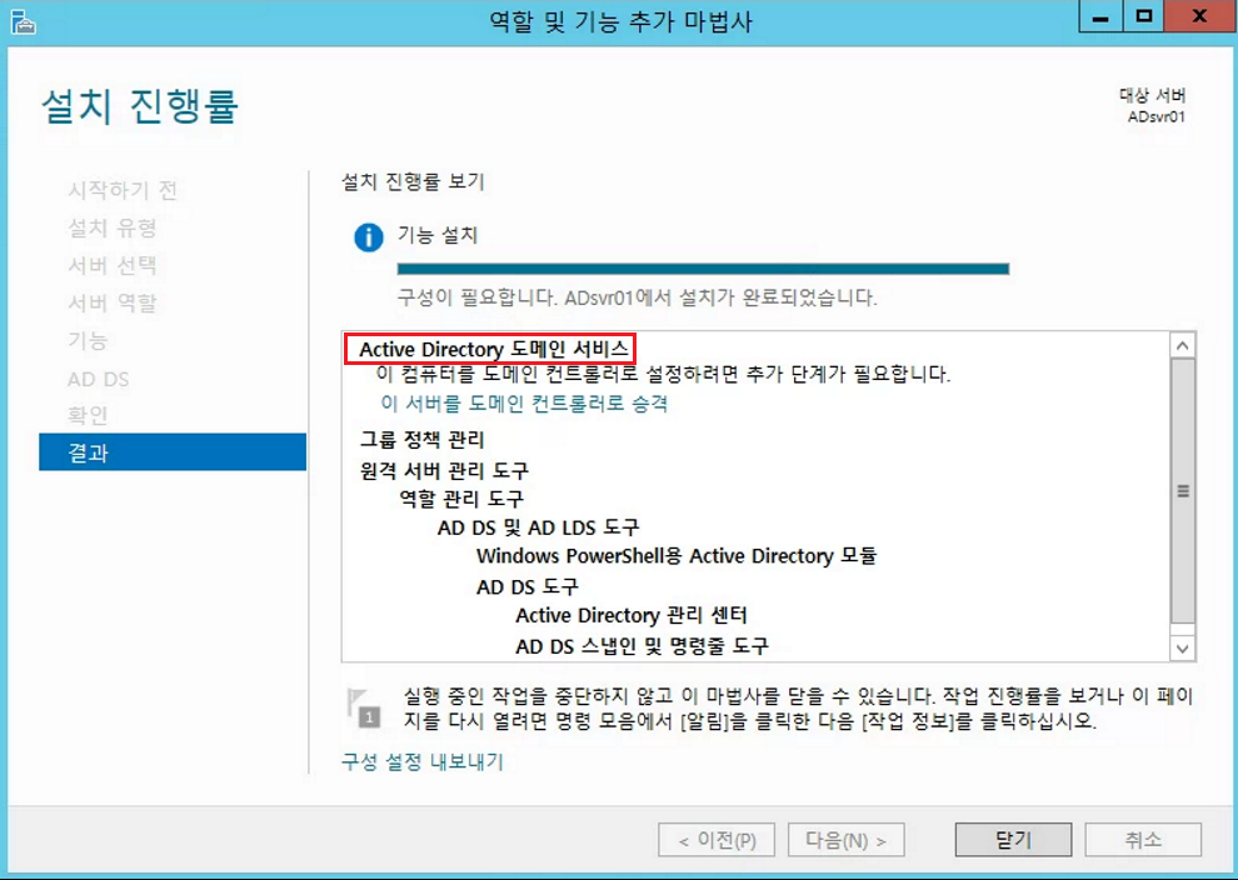 역할 설치가 완료되면 이후 설정을 위한 마법사가 자동 실행됨