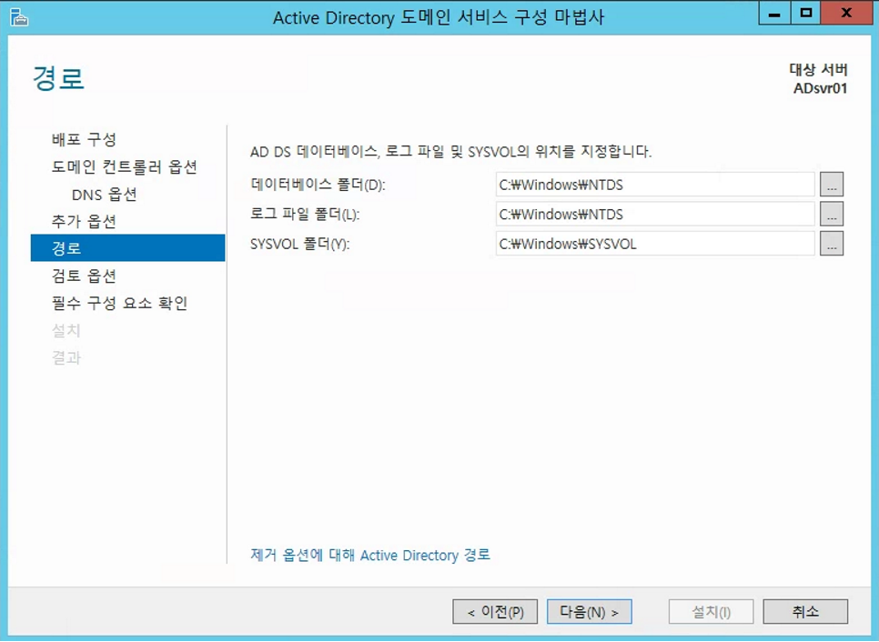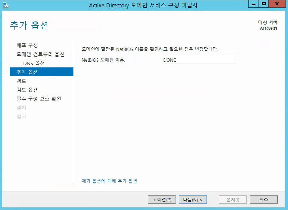 아직은 AD설정이 없으므로 도메인은 입력할 필요 없음
