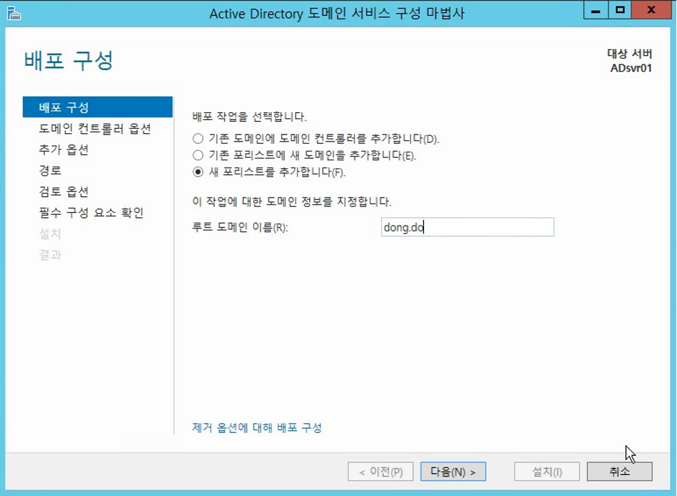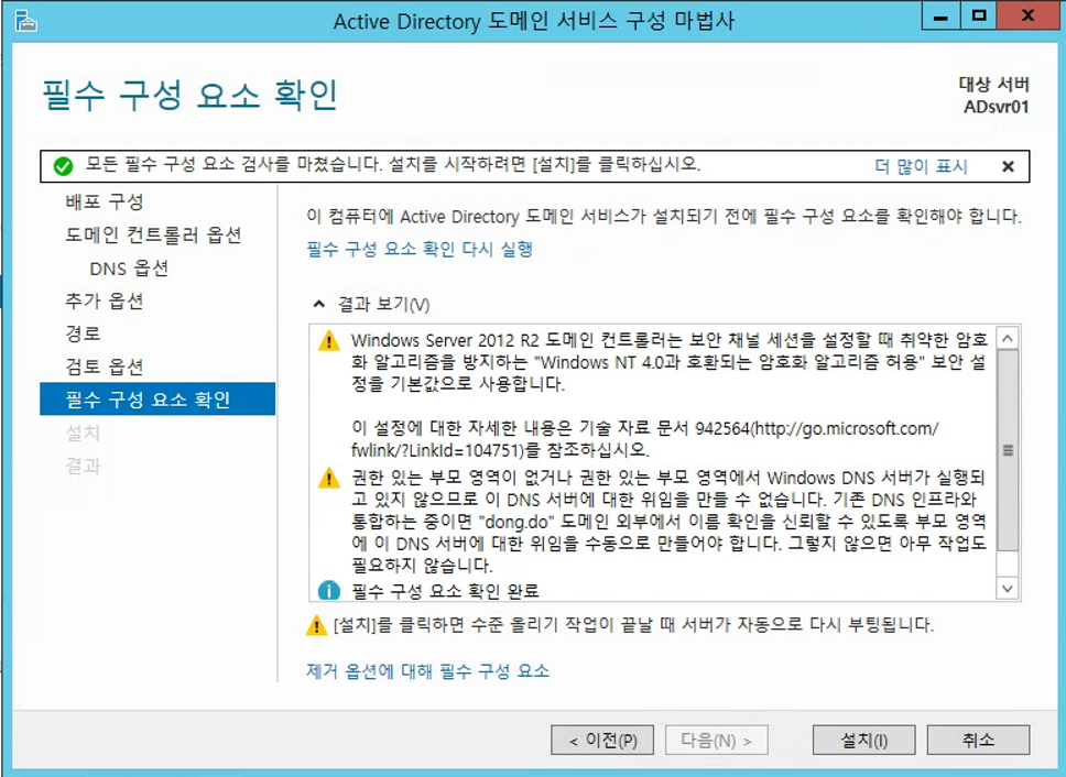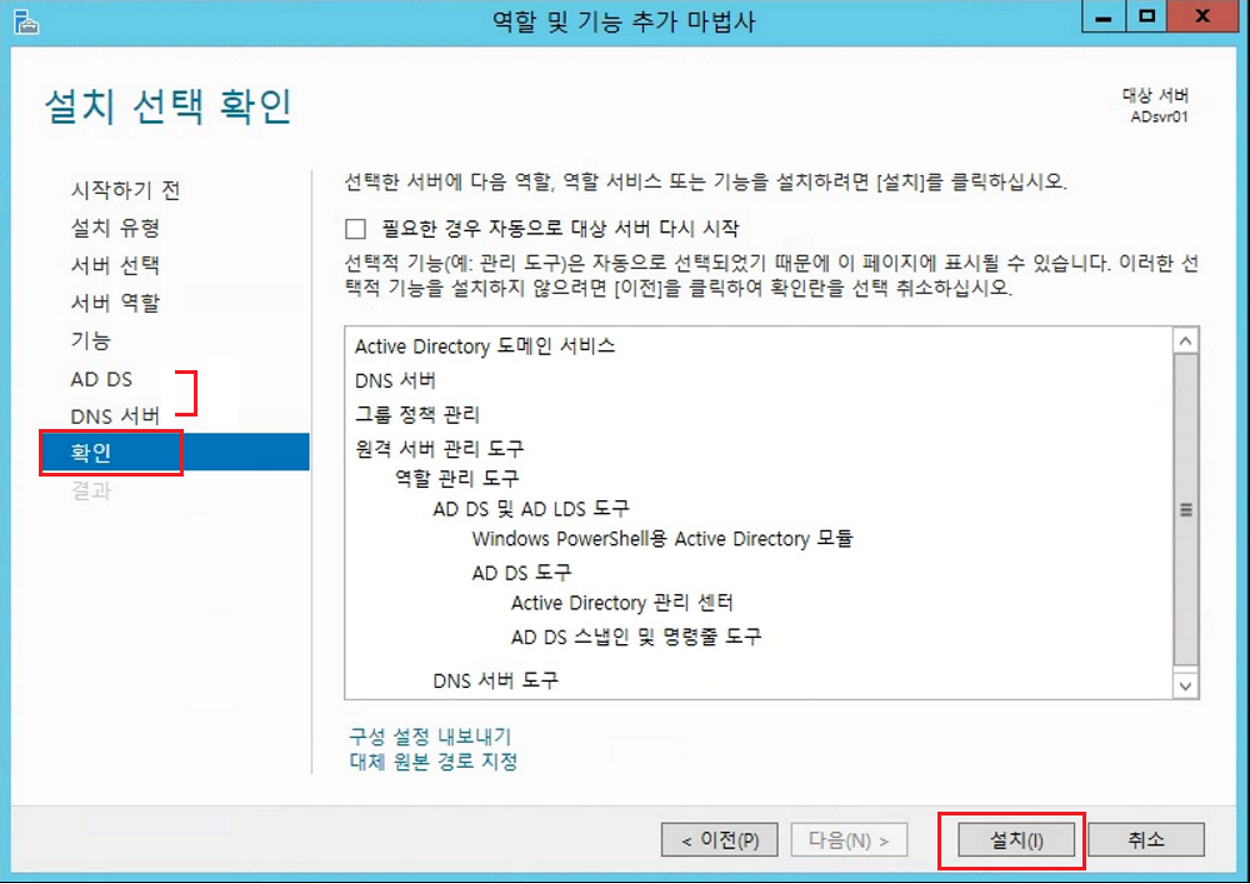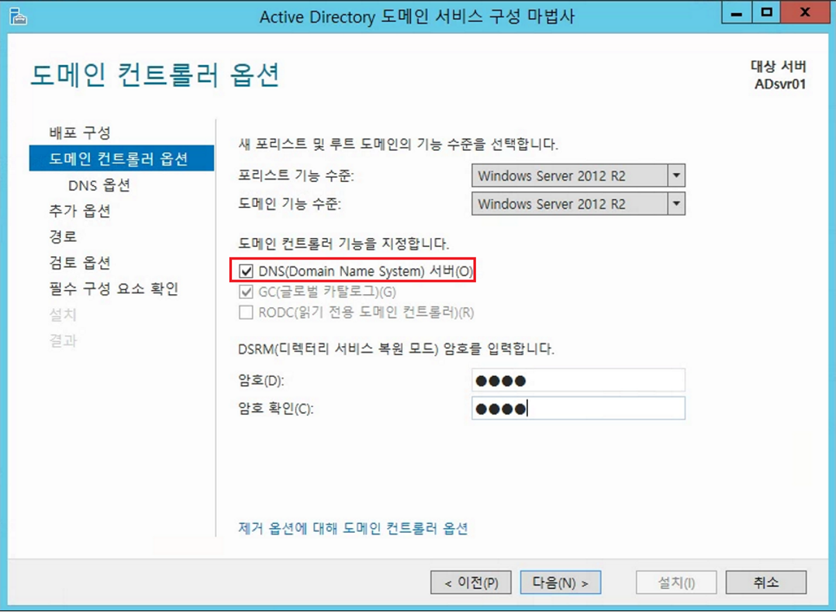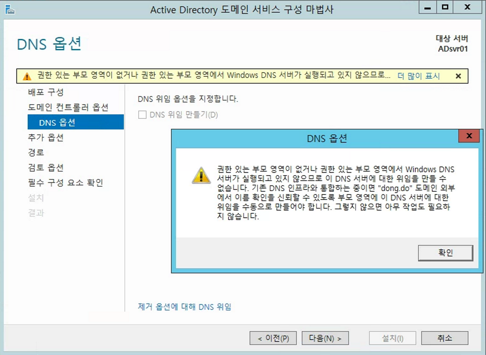 AD 도메인서비스와 DNS서비스를 따로따로 설치 진행