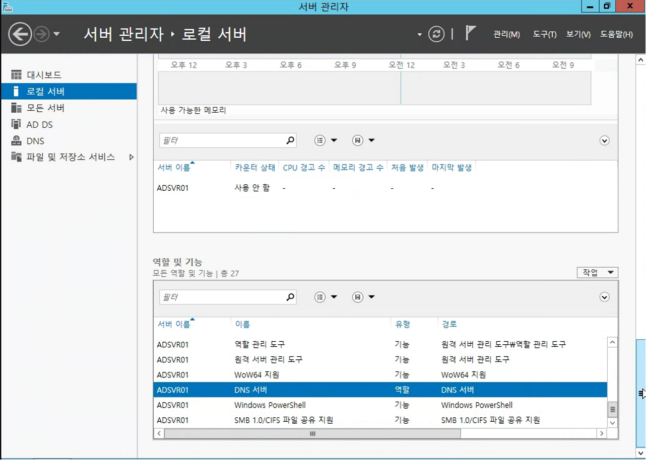 DNS 서버 서비스가 자동으로 설치됨 확인