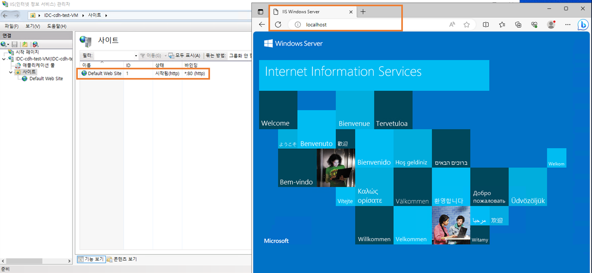 특이사항 없다면 기본 사이트로 IIS 초기페이지를 확인 가능하다.