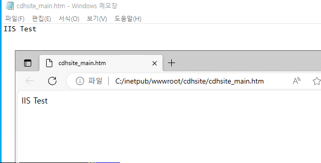 이렇게 만든 파일을 IIS 루트디렉토리아래에 index.htm 이름으로 넣어놓거나 기본문서로 추가하면
