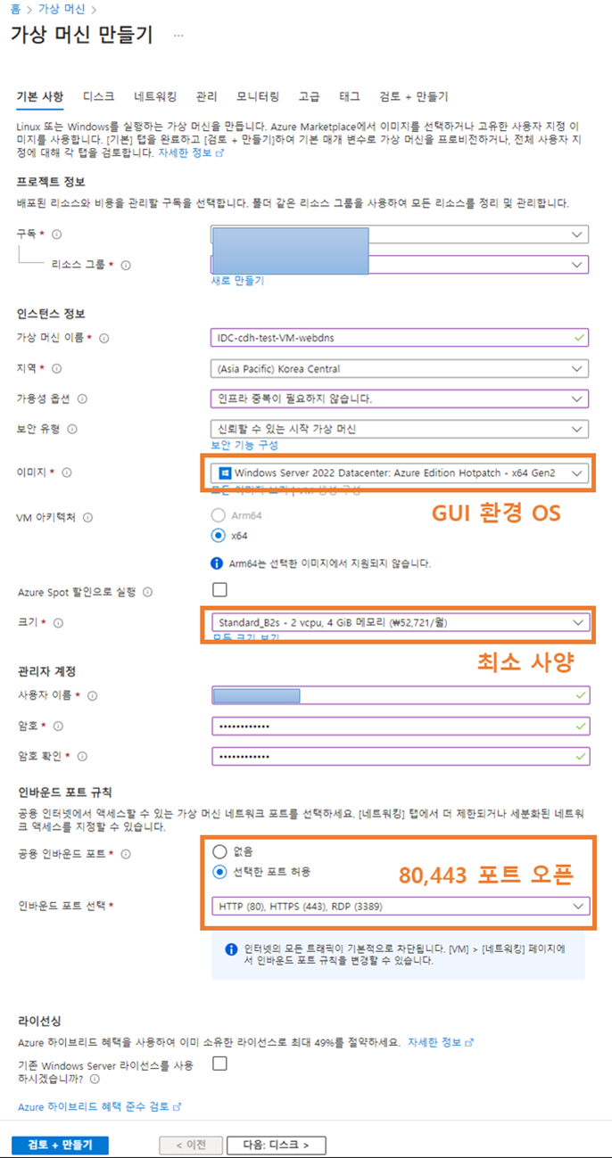 윈도우 GUI환경을 위한 Windows Datacenter 선택