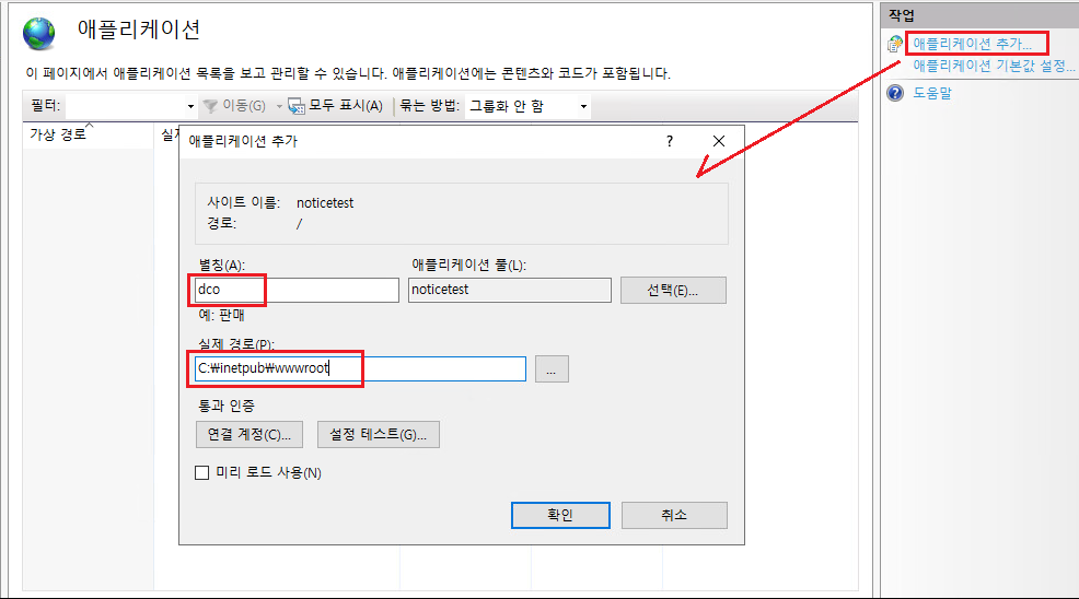 만약 noticetest.co.kr 이란 도메인에서 noticetest.co.kr/dco 라는 하위 디렉토리의 페이지를 지정해야한다면,
