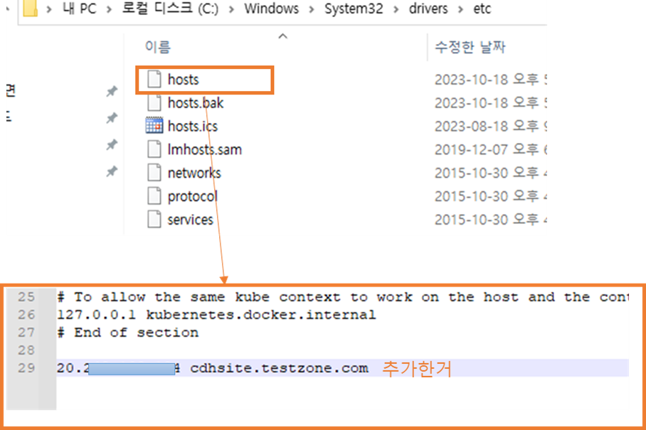 그래도 테스트는 해봐야하니 PC의 호스트파일을 수정하여 도메인으로 접근되는것 확인함.