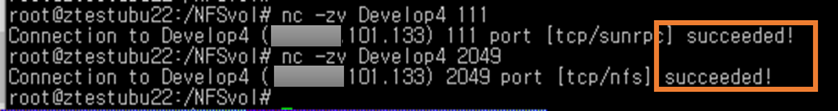 | nc -zv [NFSserverIP] 111 nc -zv [NFSserverIP] 2049 |