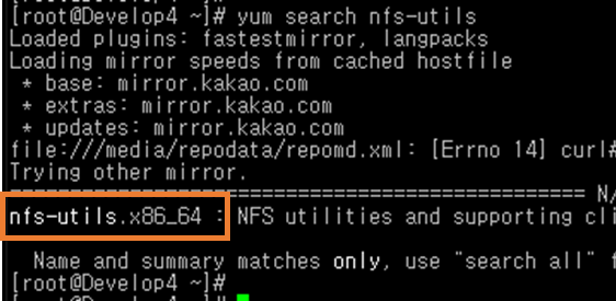 | # CentOS 명령어 yum search nfs-utils # Ubuntu 명령어 sudo apt search nfs-common |