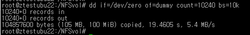 | dd if=/dev/zero of=dummy count=10240 bs=10k |