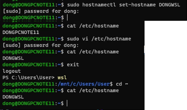 wsl 호스트명이 PC 이름과 동일해서 바꾸고 싶은데 이건 변경이 되지 않는것 같다.