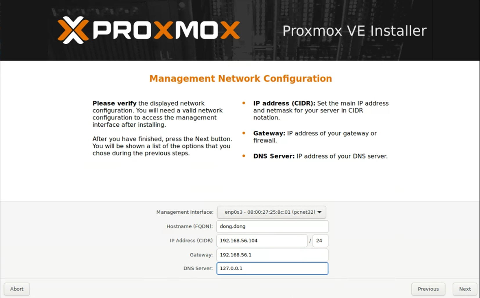 호스트서버를 관리할 물리 인터페이스를 설정한다. 이후 가상브릿지 네트워크로 지정되긴한다.