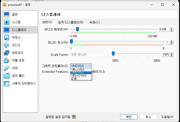 덤1) 혹시나 VM에서 설치테스트 해보고 싶다면 디스플레이 컨트롤(그래픽 컨트롤러) 바꿔야한다.