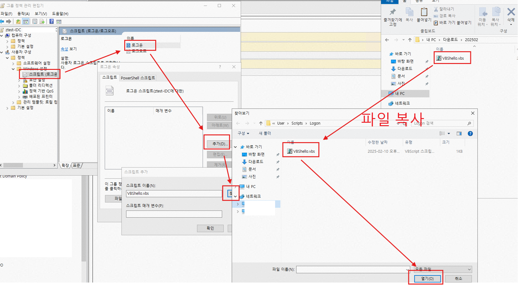 1) 적당한 테스트용 VBS 파일 작성 및 실행 테스트