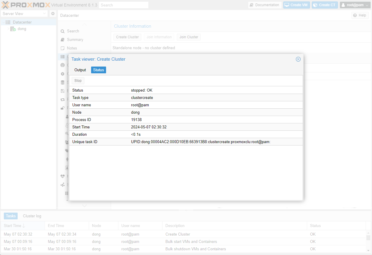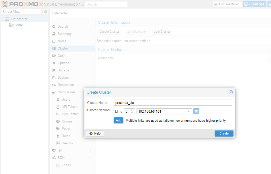1) 1개 서버에서 Create Cluster로 클러스터 생성시작