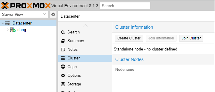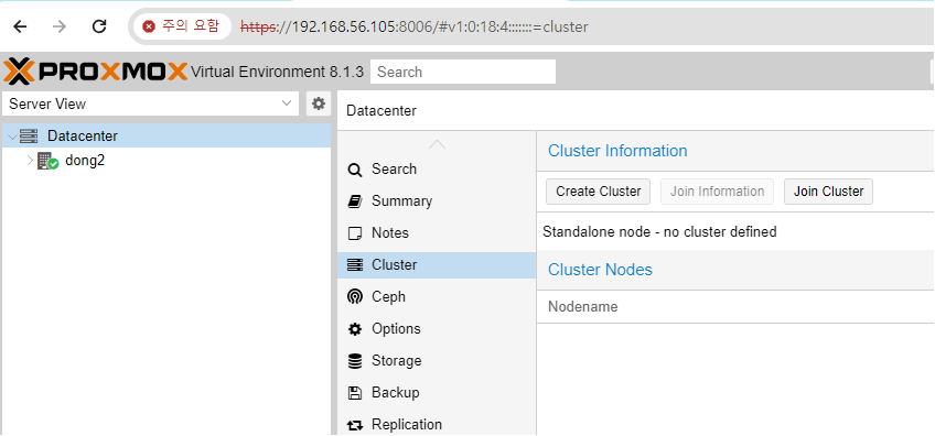 웹 GUI에서 클러스터 현황 체크. 클러스터 조인은 웹 UI 에서도 간단히 가능하다.