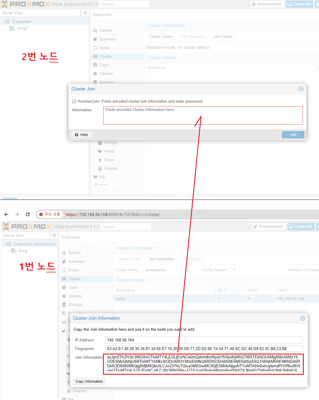 5) 1번 노드의 클러스터 키값을 2번 Join시 사용