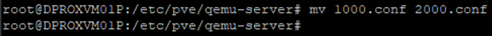 | # mv /etc/pve/qemu-server/[qmID1].conf /etc/pve/qemu-server/[qmID2].conf |
