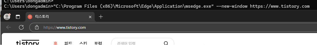 | CLI> "C:\Program Files (x86)\Microsoft\Edge\Application\msedge.exe" --new-window https://www.tistory.com |