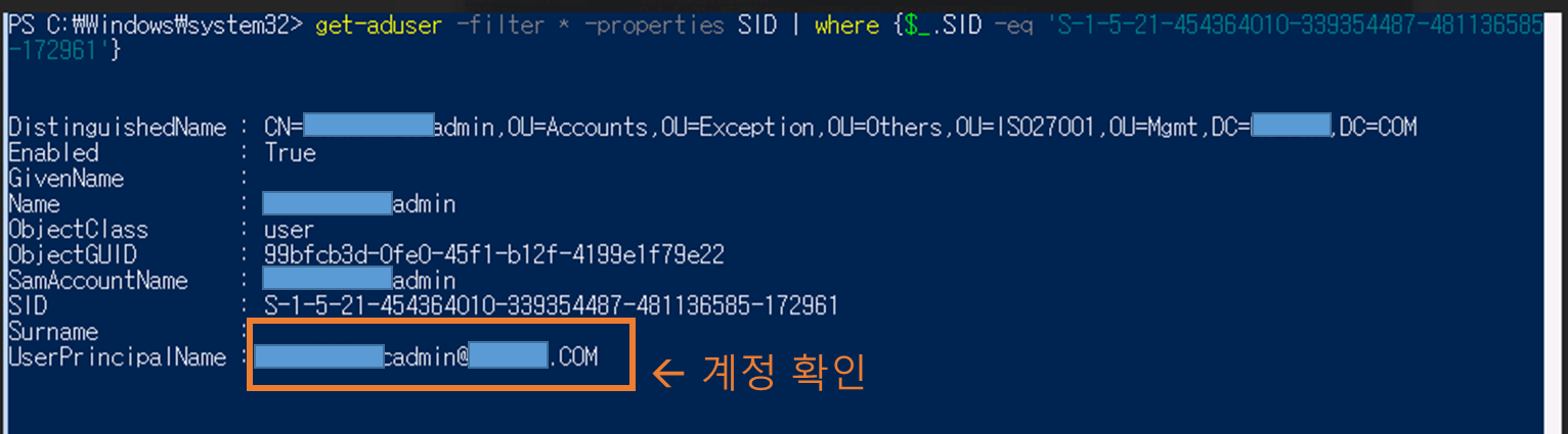 🔍 2. AD 전체 사용자 중에서 SID로 사용자 찾기
