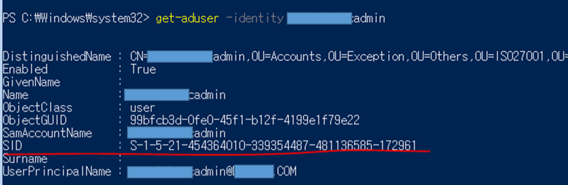 get-aduser -filter * -properties SID | where {$_.SID -eq 'SID번호'}